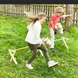 Predstavljamo vam preprečnu stazu Kavaleta brenda Small Foot, izrađenu od masivnog drva, koja omogućuje stvaranje vlastite male skakačke staze. Dvije prepreke, koje podsjećaju na prave konjske kavalete, mogu se koristiti fleksibilno: s letvicom u donjem položaju za niže skokove ili se mogu slagati jedna na drugu. Igra „konjića” i preskakanje prepreka s hobby konjićem omiljena je zabava među ljubiteljima konja svih dobnih skupina.