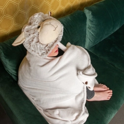 Ova preslatka topla deka s kapuljačom pretvara svako ušuškavanje u pustolovinu. Plišana kapuljača s ušima i licem ovčice te praktični džepovi u obliku šapica potiču dječju maštu, a ujedno drže ručice ugodno toplima. Lagani i prozračni flis ugodan je na dodir i odlično grije.