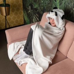 Topla deka s kapuljačom COZY NOXXIEZ Panda dizajnirana je za maksimalnu udobnost i zabavu. Super mekani flis ugodno grije, kapuljača s pandinim ušima i printom daje šarmantan izgled, a kutni džepovi u obliku šapica drže ruke lijepo na toplom. Sjajna za opuštanje na kauču, čitanje i večernje priče.