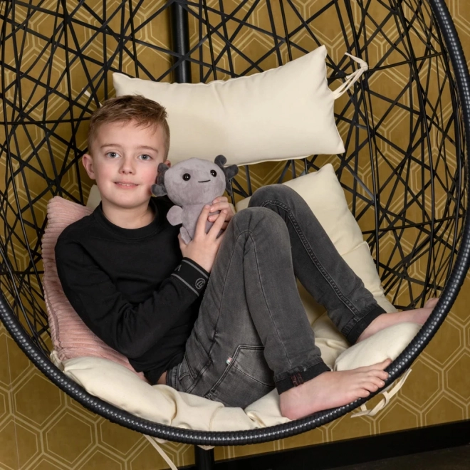Plišani aksolotl, poznat i kao vodeni zmajić, u elegantnoj sivoj boji brzo će postati omiljeni pratitelj. Zahvaljujući nježnom i pahuljastom materijalu siguran je i udoban za bebe i stariju djecu. Kompaktna veličina čini ga odličnim suputnikom i na putu i kod kuće.