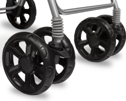 Izdržljivi EVA kotači s mekim ovjesom prednje osovine upijaju vibracije. Blokada za vožnju ravno pomaže na kaldrmi i neravninama.