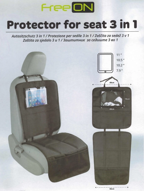 Autosjedalica s zaštitom i organizatorom 3u1 dizajnirana je kako bi ponudila sveobuhvatnu zaštitu i praktičnost. Štiti sjedalo automobila od otisaka i prljavštine zahvaljujući otpornom materijalu, koji se lako čisti.