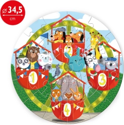 Ova prekrasna okrugla slagalica s motivom životinja na panoramskom vrtuljku donosi djeci učenje kroz igru. Zbog preglednog broja dijelova i privlačnog dizajna puzzle su prikladne za prve uspjehe u slaganju i zajedničke trenutke s roditeljima.