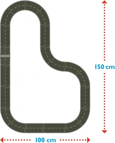 Set sadrži sve za izradu kruga duljine 400 cm i površine za igru 150 × 100 cm. Kompatibilan je sa svim dodacima linije MyRoads, pa stazu možete u svakom trenutku proširiti. Autići nisu dio pakiranja. Kao prirodan proizvod, materijal može pokazivati manje razlike u boji.