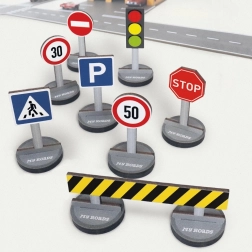 - Sadržaj seta: 8 prometnih znakova i 9 postolja (ukupno 17 dijelova)
