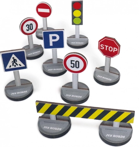 Set prometnih znakova MAGELLAN MyRoads idealan je dodatak vašim drvenim cestama i gradovima. Proizvodi su izrađeni u Njemačkoj od održivih i odgovorno dobivenih prirodnih materijala, koji su prijateljski prema okolišu. Zahvaljujući čvrstim postoljima, znakovi stabilno stoje i lako se kombiniraju s ostalim elementima linije.