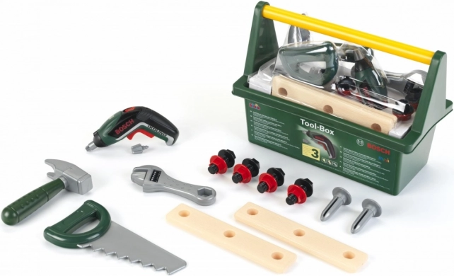 Zabavan set za male kućne majstore: dječji kovčeg s alatom i odvijačem BOSCH Ixolino II potiče kreativnost i razvoj fine motorike. Sadrži realistične elemente i idealan je za igru majstora. Lagan, siguran i jednostavan za upotrebu – savršen poklon za djecu koja vole graditi i odvijati vijake.