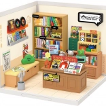 Precizne police s knjigama, pult s blagajnom i dekoracije stvaraju realistično dioramu koja se ističe na polici ili radnom stolu.