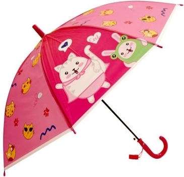 Na izbor je više motiva – slatke mačke, veseli žapci, šareni dinosauri ili polarne životinje. Svaka varijanta ima u bojama usklađenu zakrivljenu dršku za siguran i udoban prihvat. Izdržljiva konstrukcija krošnje pouzdano štiti od kiše i pretvara sivo vrijeme u zabavu.