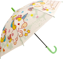 Slatki dječji kišobran s motivom jednoroga zaštitit će vašu djecu od kiše i oduševiti ih šarenim dizajnom. Zahvaljujući kompaktnoj dužini 50 cm lako se nosi u školu i na izlete te nudi više varijanti boja.