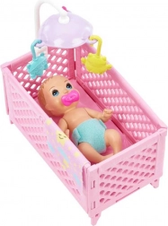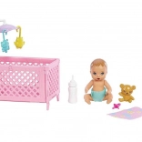 Otkrijte čaroliju brige o bebi uz set Barbie Skipper Dadilja. Ovaj preslatki igraći set donosi lutku Skipper, bebu sa zatvarajućim okicama, krevetić s vrteškom i praktične dodatke za uspavljivanje – bočicu, dudu, medvjedića, knjižicu i dekicu. Djeca mogu razvijati maštu, emocionalnu inteligenciju i njegovateljske vještine kroz igru uloge dadilje.