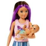 Skipper s ljubičastim pramenovima i trendi odjevnom kombinacijom unosi u igru atmosferu Barbie filmskih avantura.