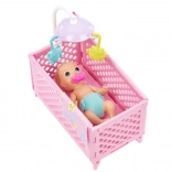 U kompletu je ružičasti krevetić s vrteškom, mekana dekica, knjižica i mali medvjedić – sve za mirno uspavljivanje i mnoštvo scenarija.