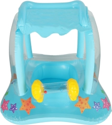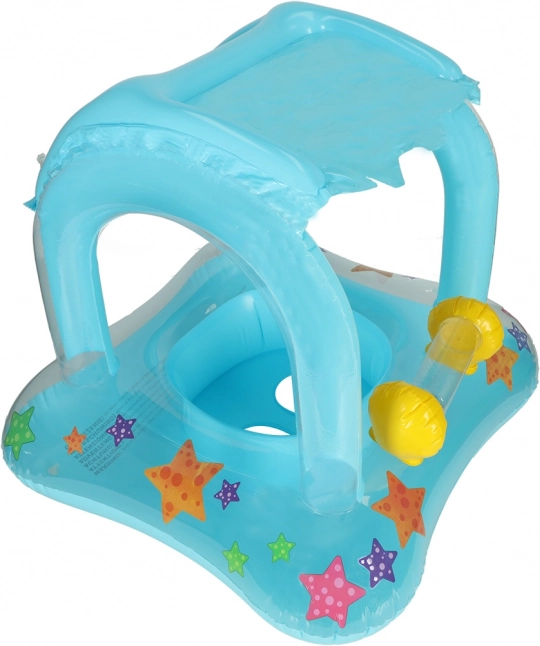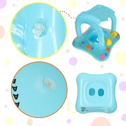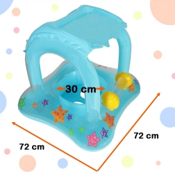 Napuhujući plivački kolut s baldahinom idealno je rješenje za sigurno igranje u vodi vaših najmlađih. Njegova privlačna plava boja i šarene zvjezdice uljepšat će svaki dan uz vodu. Baldahin štiti dijete od sunčevih zraka, dok se može udobno igrati i ljuljuškati na valovima.