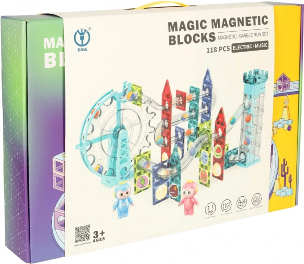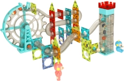 Otkrijte kreativni magnetski građevni set s prozirnim dijelovima i kugličnom stazom koji će oduševiti djecu i roditelje. Zahvaljujući snažnim magnetima konstrukcije čvrsto stoje, kuglice jure kroz promišljene tunele, a posebni elementi poput okretnog kotača i staze s dizalom osiguravaju beskrajnu zabavu. Glazbeni modul s veselom melodijom čini igru još zabavnijom, dok se pri građenju prirodno razvijaju prostorna mašta, logičko razmišljanje i fina motorika.