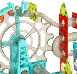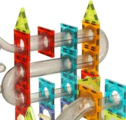 Snažni magneti drže konstrukcije čvrsto na okupu, a prozirne cijevi omogućuju djeci pratiti svaki pokret kuglica. Gradnja je brza, stabilna i zabavna.