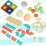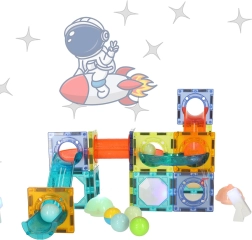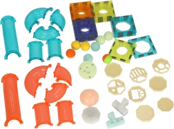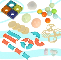 Set nudi univerzalno građenje u 2D i 3D: od jednostavnih oblika do složenih staza. Magnetni kvadrati osiguravaju stabilnu konstrukciju, dok se cijevi i tuneli lako umeću „na klik”. Zahvaljujući svjetlećim dijelovima i kuglicama, svako spuštanje pretvara se u zabavnu, vizualno privlačnu izvedbu.