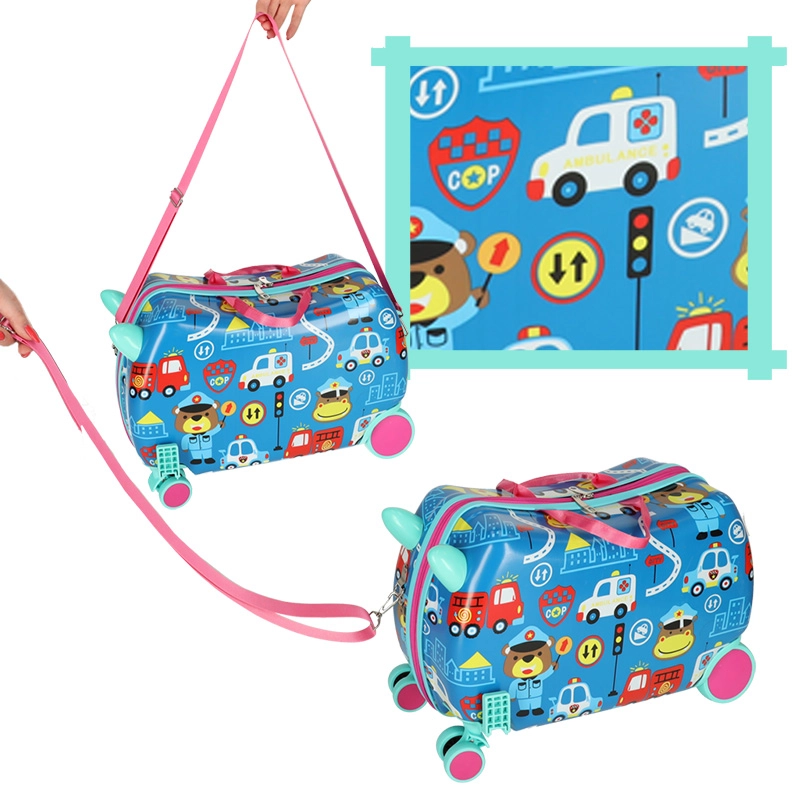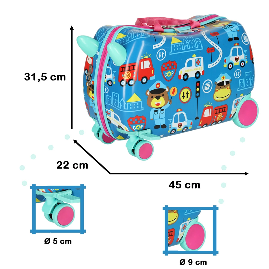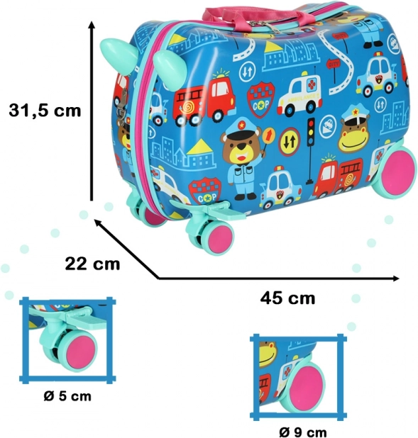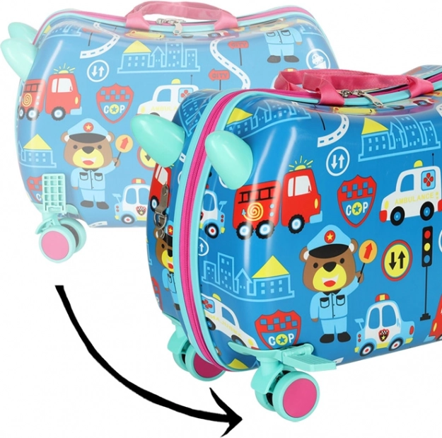 Poseban oblik kofera omogućuje djetetu da udobno sjedne, osloni noge na oslonce i da ga se vuče. Putovanje će tako biti mirnije i zabavnije.