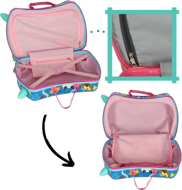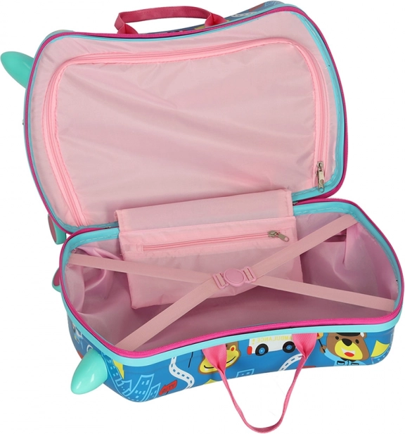Ovaj dječji kofer spaja razigranu grafiku s praktičnim funkcijama koje će cijeniti djeca i roditelji. Čvrsta plastična izrada, unutarnja ružičasta podstava i promišljena organizacija prostora olakšavaju pakiranje plišanaca, odjeće i sitnica. Četiri kotača i mogućnost vučenja na remenu osiguravaju udobno kretanje po zračnoj luci i kolodvoru.