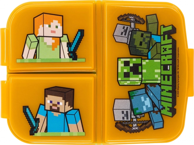 Obradujte djecu stilskom kutijom za užinu s motivima iz omiljene igre MINECRAFT. Zahvaljujući trima odvojenim pretincima lako ćete razdvojiti pecivo, voće i sitne zalogaje, pa će sve ostati svježe i uredno posloženo. Kompaktne dimenzije lako stanu u školsku torbu ili ruksak.