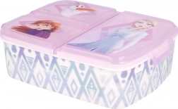 Originalna i funkcionalna višenamjenska kutija za užinu koja će djeci uljepšati svaki dan. Zahvaljujući trima zasebnim pretincima lako ćete odvojiti voće i povrće, sendvič i sitne poslastice. Izdržljiva izrada podnosi udarce i padove pri svakodnevnoj upotrebi, a atraktivni motivi iz filma Frozen 2 oduševit će najmlađe.