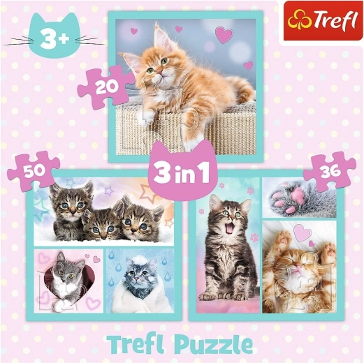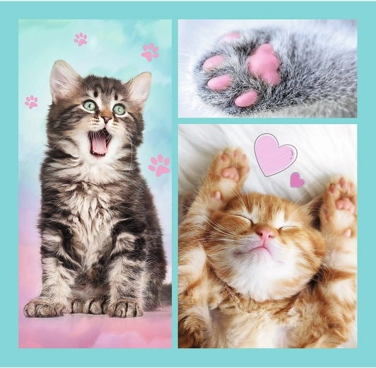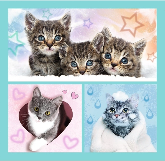 Ovaj set puzzle 3 u 1 nudi tri zasebne slike s dražesnim mačićima. Zahvaljujući različitom broju dijelova, djeca mogu birati težinu prema dobi i raspoloženju te tako razvijati strpljenje, logiku i finu motoriku.