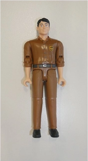 Pokretna figurica vozača UPS-a prikladna kao dodatak modelima Bruder. Muškarac u tipičnoj smeđoj uniformi. Proizvedeno u Njemačkoj, od kvalitetnih materijala. Glavne značajke: pokretna figurica, proizvedeno u Njemačkoj