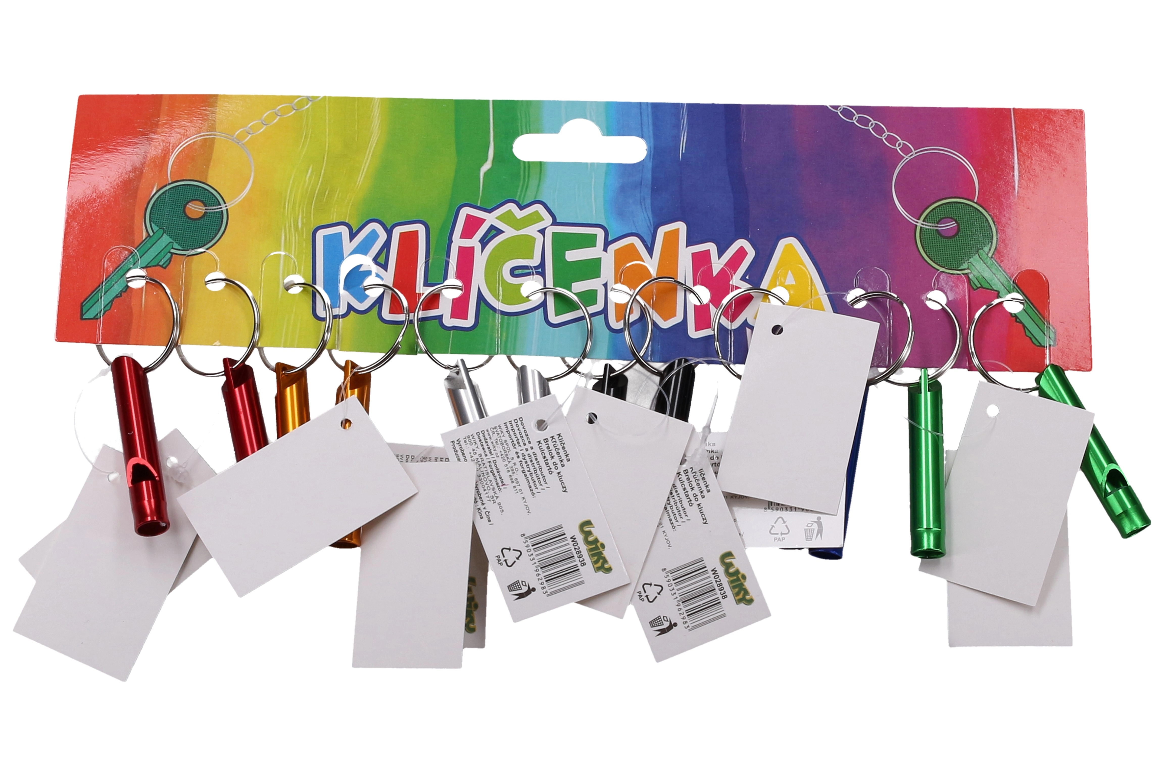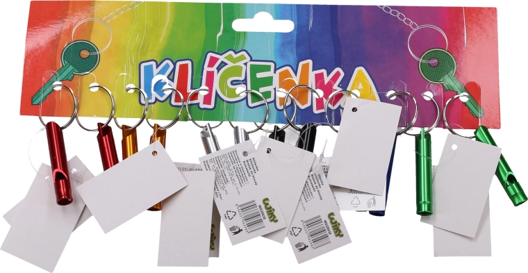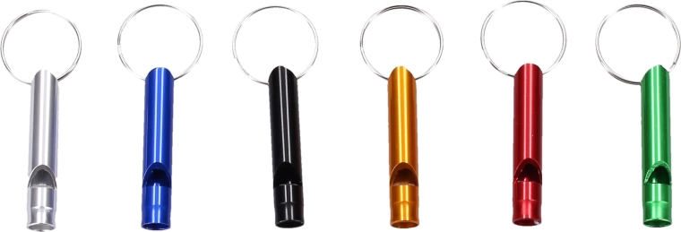 Praktični privjesak s obojenom zviždaljkom duljine 4,5 cm idealan je dodatak za ključeve, ruksak ili torbicu. Pruža brz signalni zvuk za veću sigurnost, orijentaciju i zabavu.