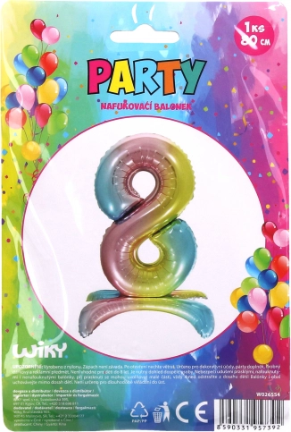 Stilski folijski balon u obliku broja 8 s efektom duge savršeno je prikladan za rođendane, obljetnice i tematske zabave. Zahvaljujući izraženim bojama i velikoj veličini djeluje kao maštovita dekoracija i fotogeničan dodatak svakoj zabavi.