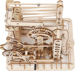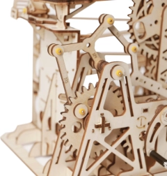 Ovaj mehanički drveni model spaja ljepotu znanosti i strojarstva u dojmljivu stazu za kuglice. Zahvaljujući ručnom pogonu ručicom pokrećete sustav zupčanika, a lift precizno usmjerava kuglice na staze s njihajućim i ravnim tračnicama. Prirodno tako razvijate tehničko razmišljanje, maštu i finu motoriku.