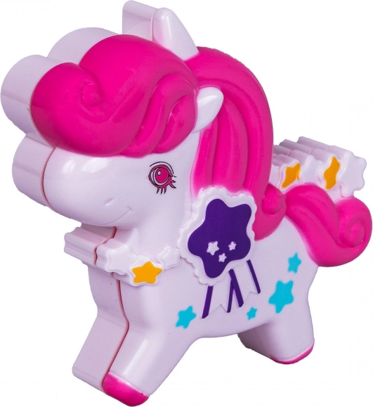 Dizajn bijelog jednoroga s ružičastom grivom potiče maštu i pretvara šminkanje u zabavnu aktivnost.