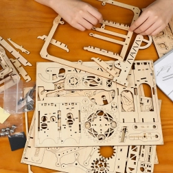 ROKR Climber je ručno sastavljiva staza za kuglice od precizno laserom izrezanih drvenih dijelova. Elegantna konstrukcija s centralnom “utvrdom” koristi prijenose, osovine i podizne mehanizme koji kuglice glatko vode po promišljenim trasama. Komplet razvija tehničko razmišljanje, maštu i finu motoriku – a ujedno je i atraktivna dizajnerska dekoracija.