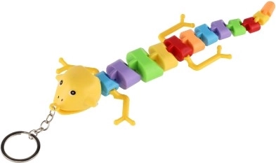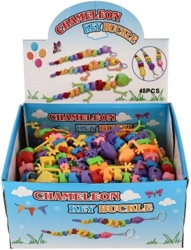 Jednostavno ga pričvrstite na ključeve ili ruksak zahvaljujući metalnom prstenu. Dostupan u raznolikom miksu boja i oblika (gušter/kameleon/zmija).