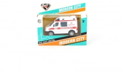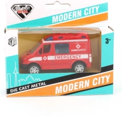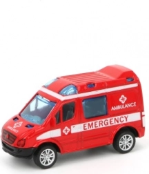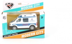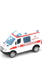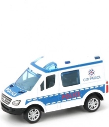 Stilizirani autić za male spasitelje i policajce: metalni model s otvarajućim vratima i pull-back pogonom. Dostupan u 4 dizajna (policija/hitna pomoć), idealan za djecu od 3 godine.