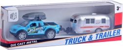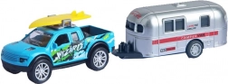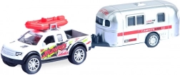 Zabavan metalni model automobila s prikolicom u četiri dizajna donosi realistične detalje, otvarajuća vrata i akcijsku funkciju pull back – navij i vozi. Zahvaljujući okretnim kotačima i odvojivoj prikolici djeca će uživati u satima kreativnosti i igara na temu putovanja i kampiranja.