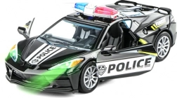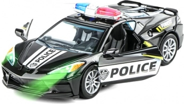 Uživajte u akcijskim potjerama i službenim vožnjama s detaljno izrađenim metalnim modelom policijskog automobila. Robusna metalna izvedba jamči dug vijek trajanja, dok otvarajuća vrata i svjetlosni efekt dodaju igri autentičnost.