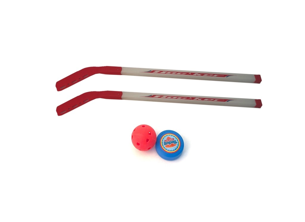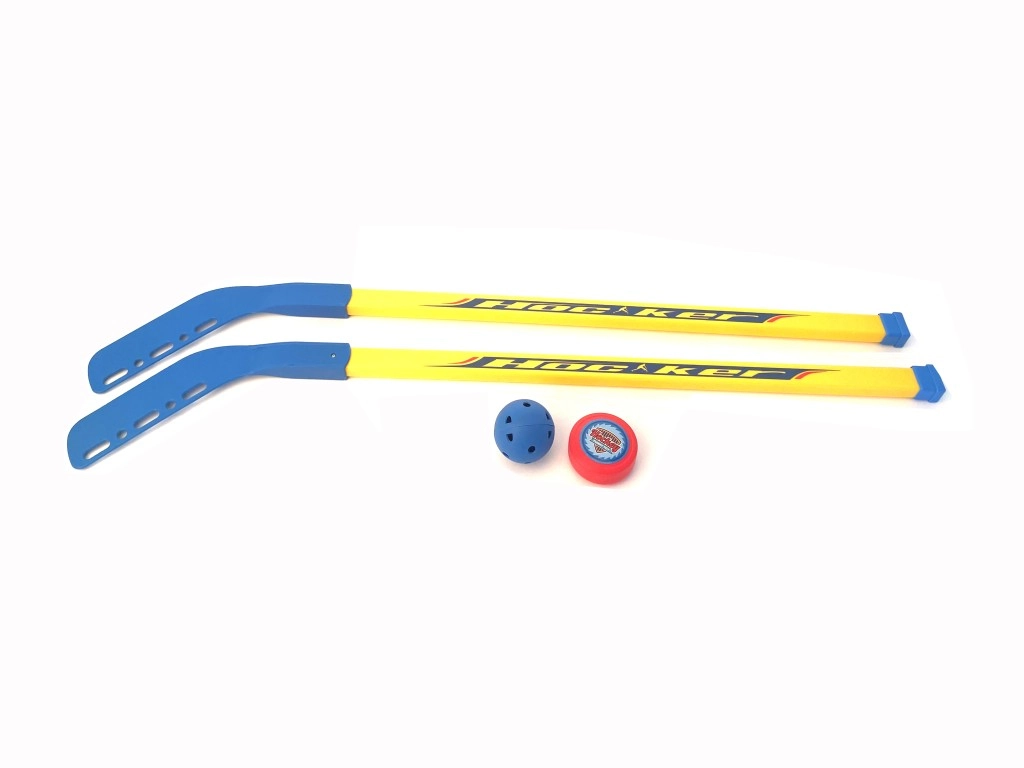 Set sadrži plastični hokejaški štap, plastičnu lopticu i pak.