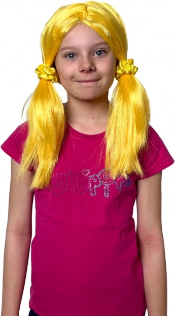 Postani zvijezda kao omiljene LOLLIPOPZ! Žuta perika s dva repića dodat će tvojoj odjevnoj kombinaciji energiju i boje. Lako se stavlja i odlično stoji, pa možeš uživati u plesu, pjevanju i igri bez brige.