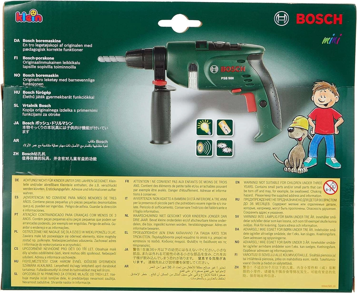 Ova dječja bušilica u kultnoj zelenoj boji Bosch vjerno oponaša pravi alat i djeci pruža zabavnu i sigurnu igru majstora. LED svjetlo i realističan zvuk pri pritisku okidača pojačavaju doživljaj igre te potiču maštu i motoriku.