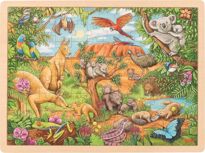 Uživajte u zabavnom slaganju puzzli s motivom australskih životinja koje se sastavljaju na podložnu ploču s povišenim rubom. Ova ploča također služi za praktično skladištenje. Marka GOKI poznata je po visokoj kvaliteti i naglasku na zdravlje i sigurnost igračaka. Upotrijebljeno drvo, poput javora, bukve, oraha, lipe, jasena, bora, breze i gumovca, dolazi iz obnovljivih izvora. Boje i lakovi nabavljaju se od manjih proizvođača kako bi se osigurala maksimalna sigurnost proizvoda.