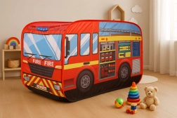 Stilski dječji šator u obliku vatrogasnog vozila donosi sate zabave kod kuće i u vrtu. Nudi brzo pop-up postavljanje, vodootporno podnožje, stražnji ulaz i otvarajući krov za još kreativniju igru. Laka poliesterska konstrukcija lako se prenosi, a šarene vatrogasne grafike oduševit će svakog malog junaka.