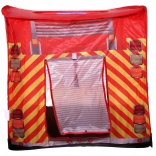 Šator ima otvarajući krov za „gašenje“ i promatranje okoline, stražnji ulaz za lako provlačenje te vodootporno podnožje za čistu i udobnu igru. Lagani i izdržljivi poliester jednostavan je za održavanje, a žive boje s motivom vatrogasnog vozila odmah će privući djecu.