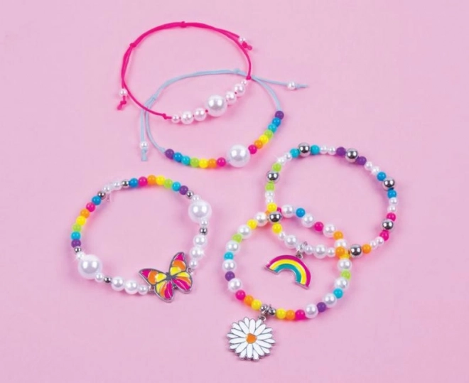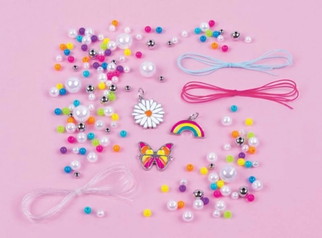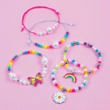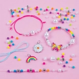 Sadrži sve potrebne komponente uključujući perlice, špagice i privjeske za izradu pet jedinstvenih narukvica.