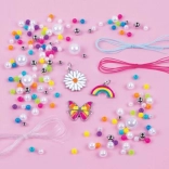 Set omogućuje izradu raznobojnih i modernih narukvica koje potiču dječju kreativnost i finu motoriku.