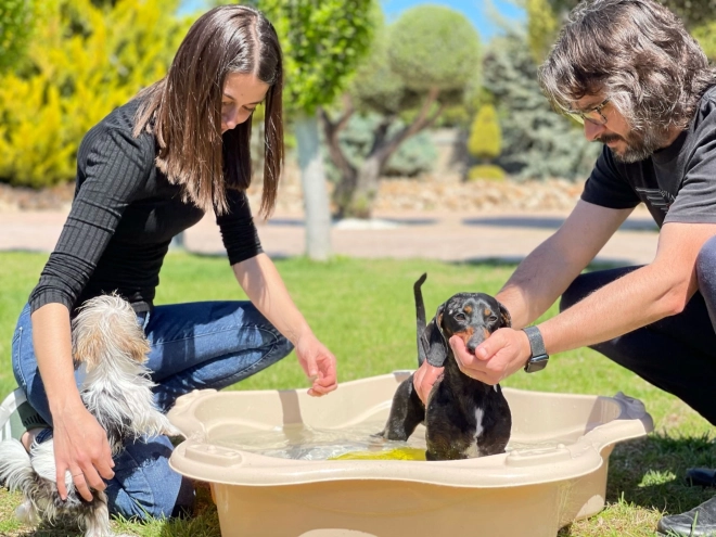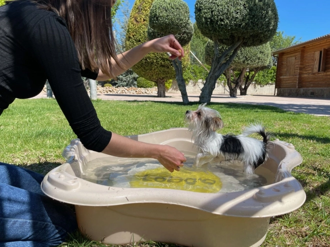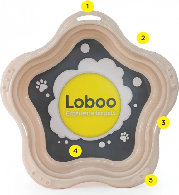 Ovaj prostrani bazen za kućne ljubimce idealan je za higijensko kupanje i ljetno hlađenje u vrtu. Laka, a čvrsta konstrukcija od materijala obogaćenog ljuskama badema osigurava dulji vijek trajanja i manji ekološki otisak. Dekor otporan na vodu i UV zračenje primijenjen je IML tehnologijom, pa se ne ljušti niti blijedi.