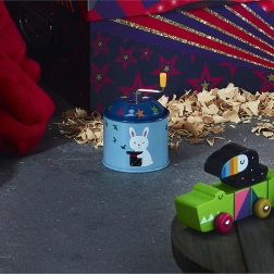 Ove tradicionalne metalne glazbene kutijice dizajnirane su tako da oduševe ne samo svojom funkcijom već i dizajnom. Svaka kutijica je ukrašena veselim motivima životinja, koji se vrte oko tema poput letenja s balonima, čitanja knjiga ili surfanja. Ilustrator Andy Westface iz Hong Konga donosi svoju tipičnu razigranost i šarenilo, stvarajući osjećaj radosti i harmonije.