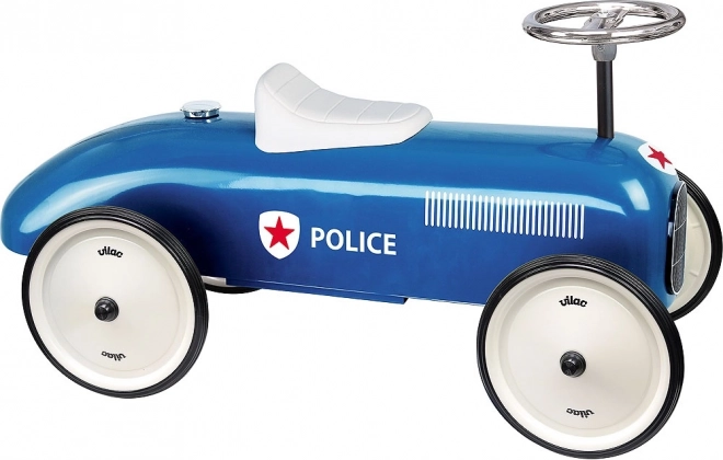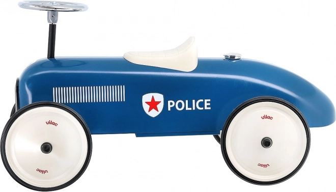 Uživajte u zabavi s plavim guralom Vilac u stilu policijskog automobila. Ovo guralo je u potpunosti metalno, što jamči visoku izdržljivost i stabilnost. Zahvaljujući gumiranim kotačima ima vrlo tih hod, i to i na tvrdoj podlozi. Opremljeno je volanom koji omogućuje jednostavno upravljanje.
