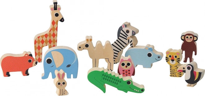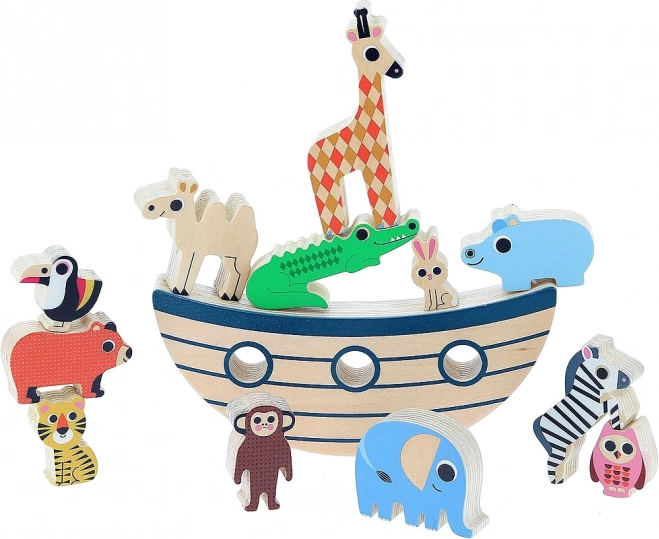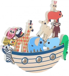 Igra sadrži šaroliku kolekciju od 12 drvenih životinjica koje djeca mogu slagati i balansirati na osnovi.