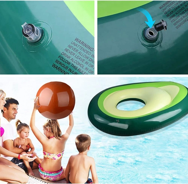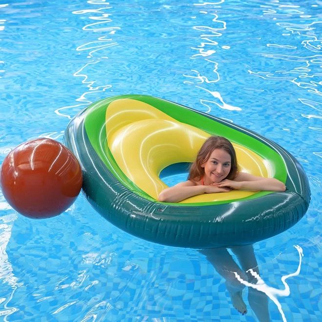 Originalni madrac u obliku zrelog avokada uljepšat će svaki bazen i plažu. Odvojiva “koštica” funkcionira kao samostalna lopta za vodu i plažne igre, ili kao jastuk/naslon pri ljenčarenju na vodi. Otvoren srednji dio pretvara madrac u stabilan kolut za relaksaciju i učenje plivanja.