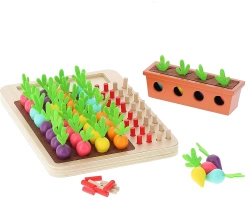 Igra "Što raste u vrtu?" je savršen izbor za razvoj motorike i logičkog razmišljanja vaše djece. Zabavan dizajn s šarenim mrkvama osigurava da djeci nikada neće biti dosadno.